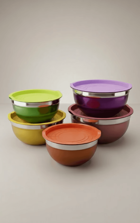 Stainless Steel Salad Bowl Set with Lids – Colourful Kitchen Mixing & Storage Bowls